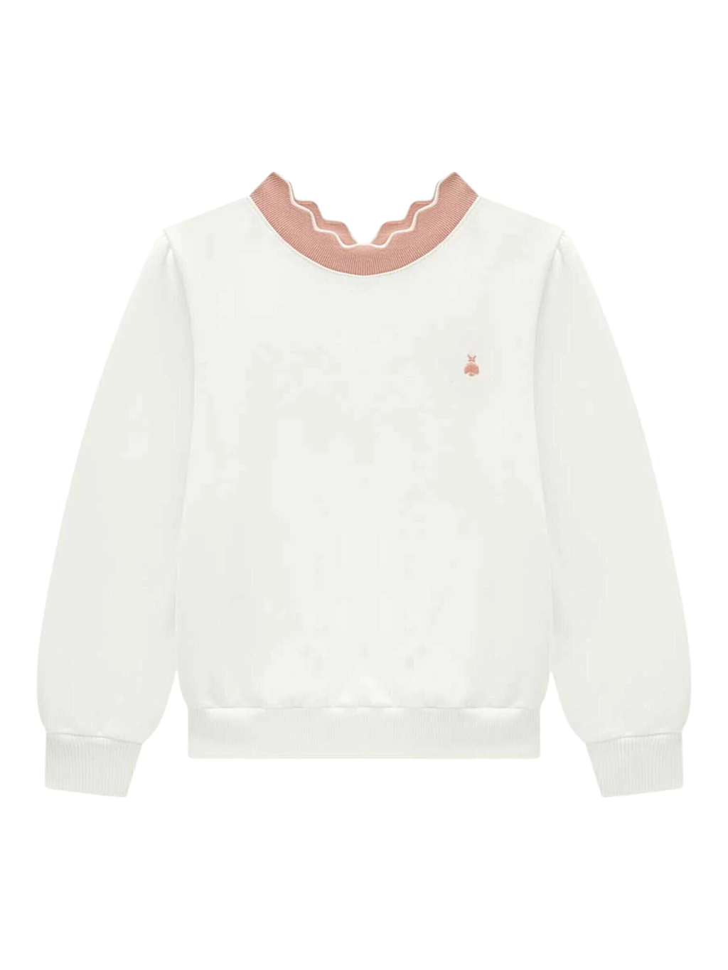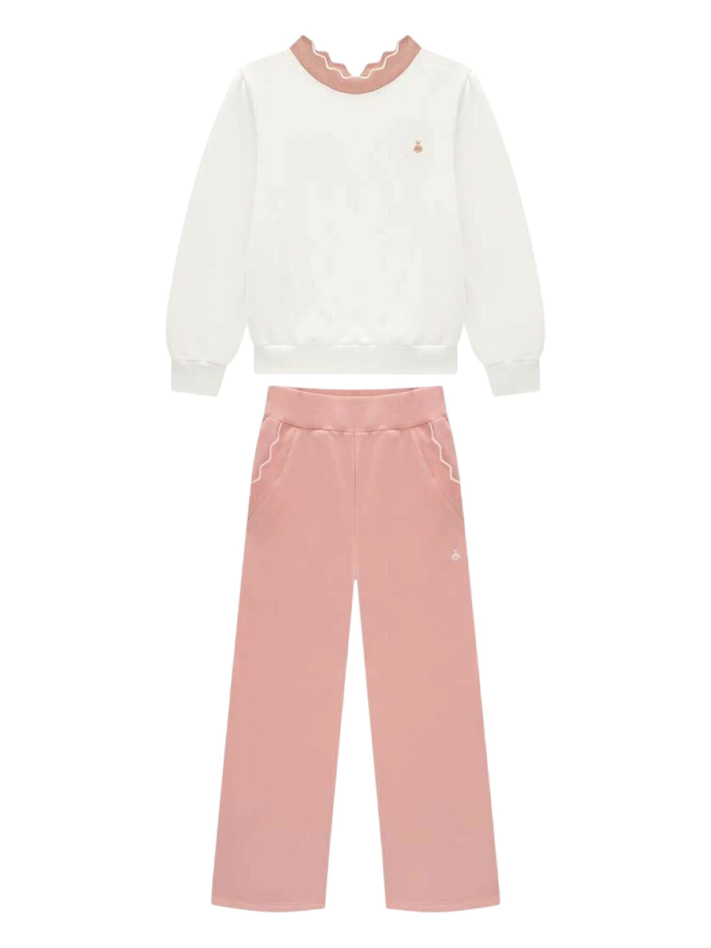 O blusão em moletom destaca-se pela gola colorida, um detalhe sutil que adiciona charme e personalidade ao visual. A logo bordada da marca no lado esquerdo confere um toque de exclusividade, ressaltando a qualidade e o bom gosto da peça. Já a calça em moletom, no modelo wide, oferece um caimento moderno e super estiloso, garantindo liberdade de movimento para sua menina brincar e explorar o mundo com conforto.